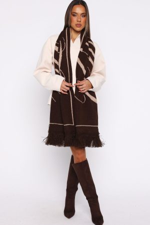 Your new winter warmer! The Aariya Scarf Chocolate features a warm knit material. tassel detail. abstract print and WF logo detailing. Throw over any outfit and you’ll earn extra style points!