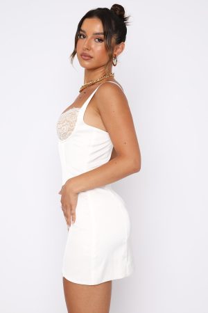 Be best dressed in the Admire You Mini Dress in White. Featuring thin. adjustable straps. bust underwire. lace bust and hem detail. invisible zipper centre back and lined fabric. Complete the look with a cute mini bag and clear heels for a dreamy look!
