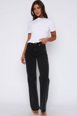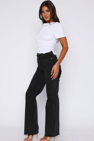 Get ready to up your denim game in the Alana High Waisted Straight Leg Jeans in Black Acid! Features high rise. relaxed straight leg style. slight distressed hem detailing. silver button closure & zip at front. belt loops. 5 pocket design and distressed fabric design at back. Pair with a cute crop top and sneakers for a casual but chic look.