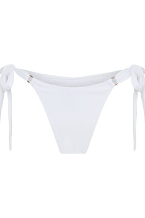The Algarve Bottoms White are your new beach essential. Features a high hip design. lined. thong cut design. thick. self tie straps and gold hardware detailing. Style with the matching Bianca Bikini Top White. or any of your favourite WF swim in White!