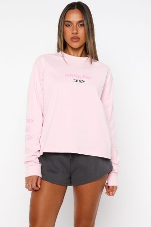 Put me on your wishlist! The All Around Me Long Sleeve Tee in Pink features a classic crew neckline. ribbed cuffs. a relaxed fit. semi-stretch fabric. and bold White Fox text on the front plus graphic sleeves. Pair it with your favourite denim and sunnies for an effortless winter-day vibe.
