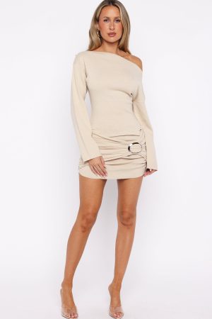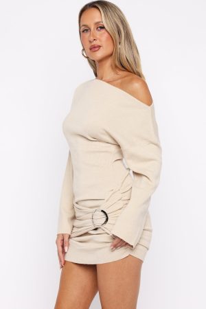Tags: badge:back_soon_au, buystructure:fashion, checks_buystructure, clothing, colour:nude, discountable, discountable_uk, discountable_us, Division:Fashion, dresses, end-use:day, fabric-type:55-acrylic-45-nylon, fabric:knit, feed-cl2-fullpriceau, feed-cl2-fullpriceuk, feed-cl2-fullpriceus, feed-cl4-winter, length:long-sleeve, long-sleeve-dresses, low_availability_au, low_availability_us, mini-dresses, off the shoulder, out-of-stock, pattern:plain, recently_added_2025-12-08, SALE40, season:winter, size:l, size:m, size:s, size:xl, size:xs, size:xxs, sizeguide:clothes, subcat:mini-dresses, subcategory:Long Sleeve Dresses, subcategory:Mini Dresses, tone:Oat