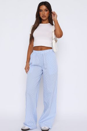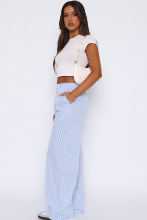 Elevate your everyday look in the Always About Us Pants Light Blue! Featuring a high. elasticated waistband and lightweight. striped cotton fabric. We love this paired with a cute crop and sneakers for a cool girl fit!
