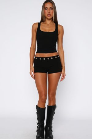 Introducing our playful and flirty mini shorts – Always Chasing Mini Shorts in Black! Features thin elasticated waistband with silver eyelet detailing and stretch fabrication for an easy slip on and off. Complete the look with a black tank and sunnies for a look we love.