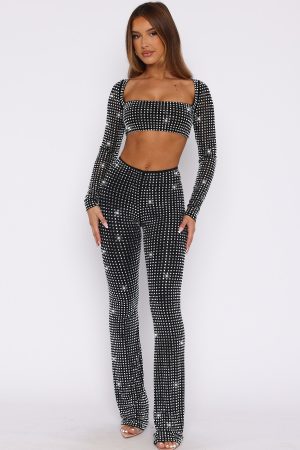 Make hearts race in the Always Sparkling Embellished Pants Black. Features a thin elasticated waistband. mid-rise fit. full length. straight leg design. lined and stunning diamante embellishments. We love these paired with the matching top for a look worthy of posting on Instagram!