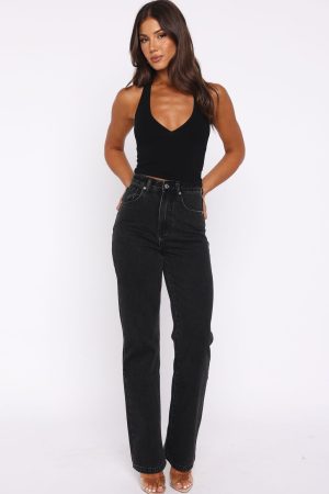 The Alyssa High Rise Straight Leg Jeans in Black Acid are a timeless wardrobe essential. Featuring a straight-leg high rise silhouette. belt loops. a button and zipper closure. and a classic 5-pocket layout. they provide both functionality and a sleek look. Finished off with a subtle faux leather White Fox label at the back and the unlined design ensures breathability. Pair these jeans with a basic tank top. sandals. a shoulder bag. and your favorite sunnies for a chic. laid-back look.