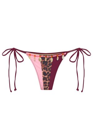 Spice up your swim wardrobe with the Angelika Bikini Bottoms in Leopard Splice! Features self side tie straps with beading detailing. alternate design panelling on front. beading and shell detailing on waist hemline and cheeky coverage. Team with the matching Katia Bikini Top in Leopard Splice for the cheekiest set to soak in the sun.