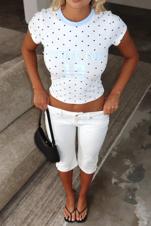 Meet the capris everyone’s whispering about Annie Low-Rise Capri Jeans in Off White. With a relaxed low-rise fit. and a sleek front button-and-zip closure. these ¾-length capris feature a playful side split and practical five-pocket design. The unlined fabric keeps it breezy. while a subtle side-back logo adds a touch of signature swagger. Style them with a classic tank. slides. and sunnies for an effortlessly chic weekend look.
