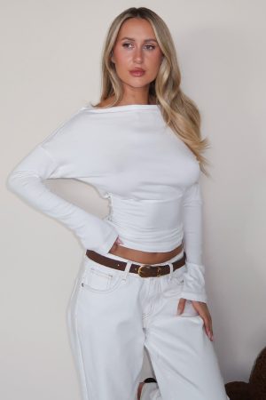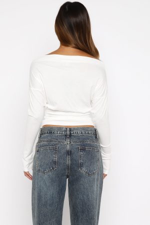 The simply things make all the difference! Meet the Another Time Long Sleeve Top in White. featuring a jewel neckline. long sleeves. and a loose. breezy fit through the bust. it tapers into a softly fitted waistband. Crafted from a high-stretch fabrication that’s unlined. Style with your go-to denim jeans. boots and layer with a coat for a cosy look.