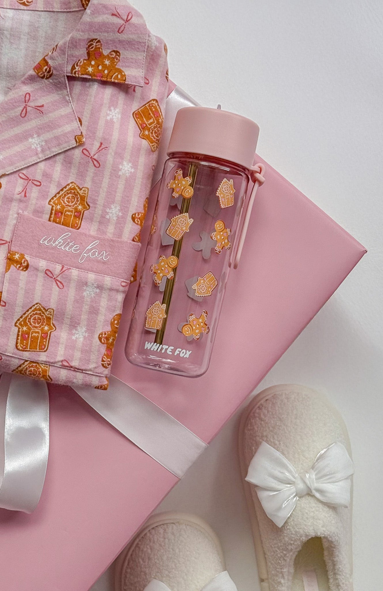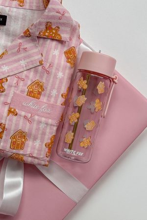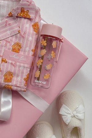 Add a dash of festive fun to your daily hydration with the Averill Drink Bottle 740ml in Gingerbread Twist. This charming bottle boasts a pop-up straw. a transparent body adorned with a gingerbread graphic and ‘White Fox’ text. complemented by gold-tone straw and an attached carry strap. It’s the perfect blend of functionality and holiday cheer.