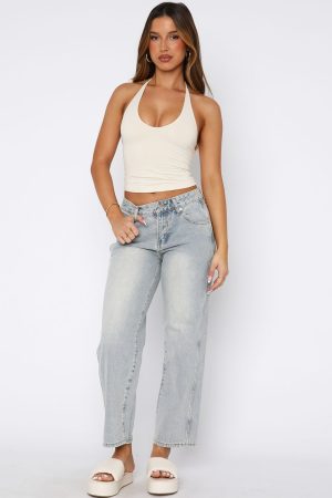The perfect jeans do exist – introducing the Avianna Mid Rise Cropped Straight Leg Jeans in Light Blue. Features mid rise deisgn button and zipper closure centre front. belt loops. 5 pocket design. cropped straight leg design and Faux leather White Fox label side back. Pair with a basic top and sandals for the perfect Sunday strolling through the markets fit!