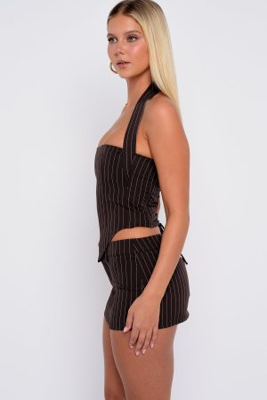 Back To Business Halter Bustier Chocolate Pinstripe