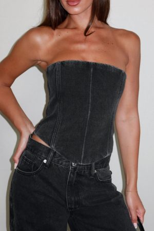 Be Mine Forever Denim Bustier Black Acid