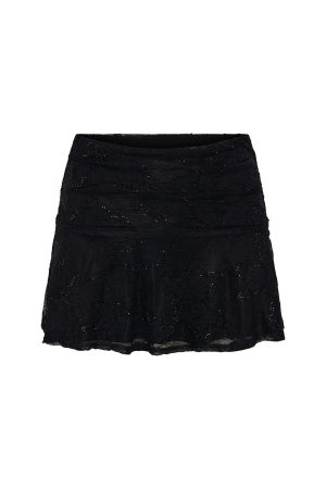 All in the details. The Be Our Guest Embellished Lace Mini Skirt Black features a thin elasticated waistband. refined side‑ruched detailing. lace fabric enhanced with sparkling diamanté accents and is fully lined. Style with the matching Always Stay Embellished Lace Long Sleeve Top and kitten heels for a flirty look.
