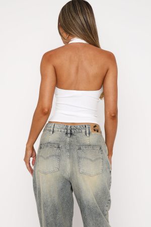 Spring is around the corner and the Believing The Lies Halter Top White is a must have! Features a halter neck design with clasp closure. low plunge V neckline with front tie detailing. lace trim detailing. stretch material and cropped length. Pair with a mini skirt for the cutest vibe!
