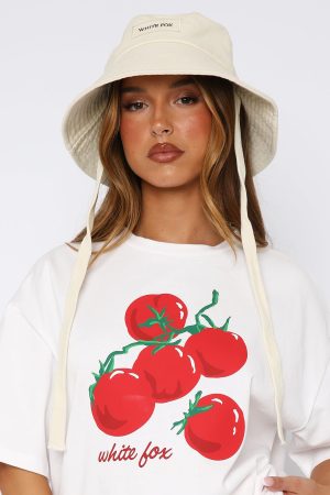 Add a touch of fun to your outfit with the Belle Bucket Hat in Cream. This playful accessory features a wide brim. stitched White Fox text centre front and adjustable ties. Pair with your fav White Fox bikini and enjoy the sun!