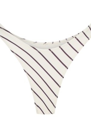 Say hello to summer in our Belmont Bottoms in Cream/Choc Stripe. These bikini bottoms are a cheeky cut. high hip design and are lined with a silver plate at side back. To compliment these bikini bottoms pair with the matching Ocean Baby Bikini Top Cream/Choc Stripe!
