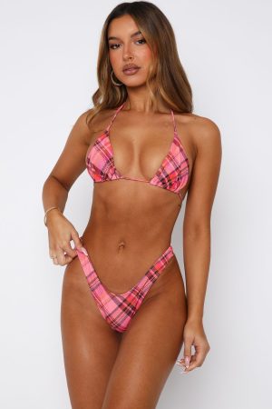 The Belmont Bottoms in Pop Check are essential for sun drenched days. These high hip bikini bottoms are a lined cheeky cut design with gold plate at side back. To compliment the bottoms pair with one of our matching Golden Hour Bikini Top in Pop Check.
