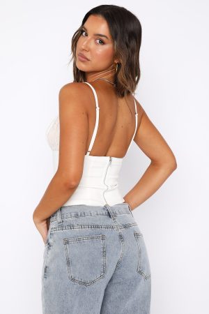 The Blessed Life Bustier in White is giving us major jeans and a cute top vibes! Featuring thin. adjustable straps. plunge neckline. zipper centre back and lined fabric! We love this paired with your favourite pair of White Fox Denim Jeans and heels for a chic look!