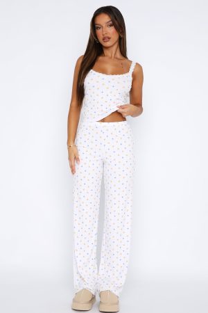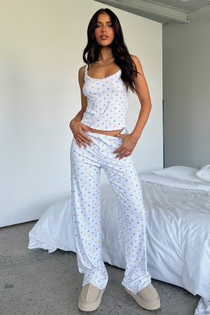 Your new favourite sleep set is here with the Sleep On It Pyjama Set Buttercup Floral! Features a low cut neckline. lace trim. thin straps. jersey stretch fabric and a matching straight fit pants with a thin elasticated waistband! Get cosy and pair with your go to snuggs and sleep tight!