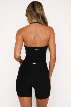 Your next sweat session is calling out for Body Pump Active Tank Black. Features a halter style neckline with a scoop neckline. thick stretch strap. fitted design. lined. removable padding with inbuilt crop and custom patch detail. Pair with one of the matching Black WFA Bottoms.