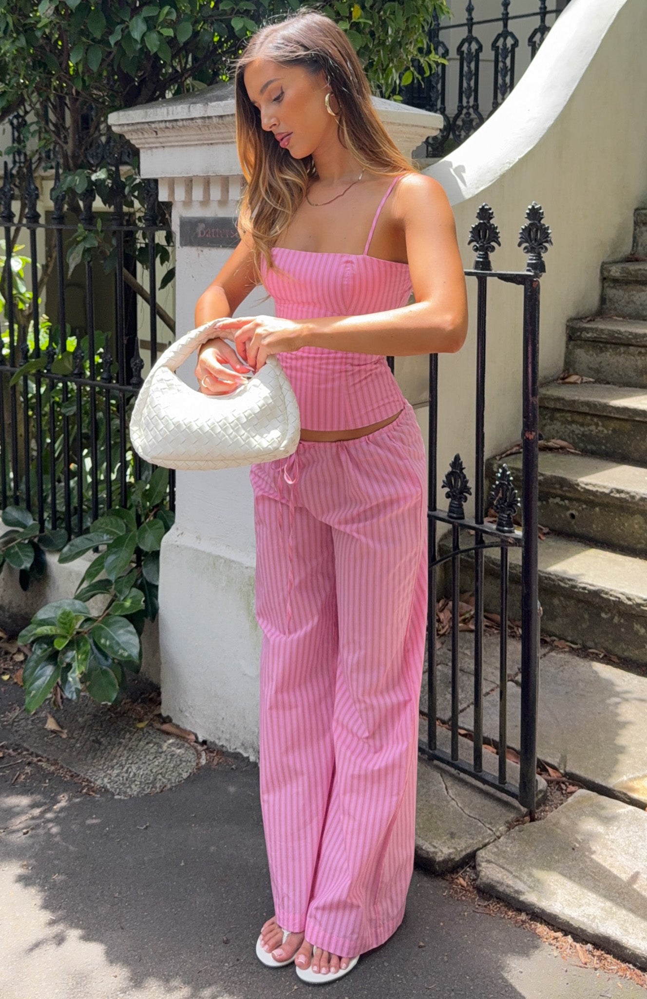 Tags: bottoms, buystructure:fashion, clothing, collections:au-summer-jan-26, colour:pink, description_cleaned_au, discountable, discountable_uk, discountable_us, Division:Fashion, end-use:day, fabric-type:100-cotton, feed-cl0-newarrivals, feed-cl2-fullpriceau, feed-cl2-fullpriceuk, feed-cl2-fullpriceus, feed-cl4-spring, feed-cl4-summer, Going Out Sets, matching-set:yes, New Arrivals, new_arrivals_au, new_arrivals_uk, new_arrivals_us, pants, pants-sets, pattern:stripe, print:stripe, recently_added_2026-01-05, SALE40, season:summer, set-mix:3-piece, size:l, size:m, size:s, size:xl, size:xs, size:xxs, sizeguide:clothes, subcat:fashion-pants, subcategory:Dress Pants, subcategory:Sets, tailored pants, tone:Pink Stripe, two-piece-sets