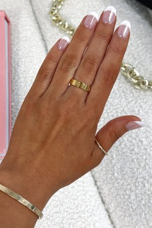 We are loving this ring for your everyday wardrobe! This is a thick. gold toned hardware ring. Just add to your outfit of the day to complete your look!