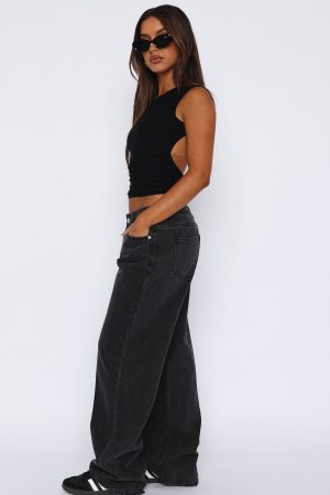Bring The Style Low Rise Wide Leg Jeans Black Acid Wash