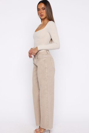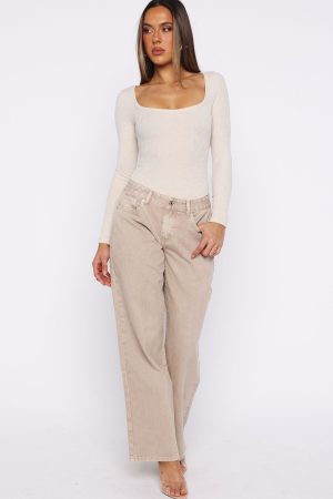 A timeless classic never goes out of style! Meet Bring The Style Low-Rise Wide-Leg Jeans in Sesame Wash. Designed with a low waist. zip-and-button closure. belt loops. five-pocket layout. and a relaxed wide-leg silhouette. Pair with a cute crop top and sneakers for that effortlessly chic IT-girl vibe.
