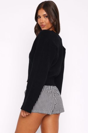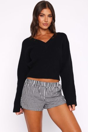 Don’t sacrifice comfort for cuteness! Get the best of both with the Brooklyn City Knit Sweater Black. Features a ribbed. V-neckline. long sleeves. unlined. knitted material. ribbed cuffs and hem and cropped length. Add a pair of jeans to complete your OOTD!