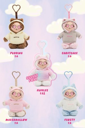 Meet Bubbles and Foxy Friends. with their long bushy tails and pointed ears. these furry friends are having fun chasing after Bubbles. Who will join your collection? Discover them all. and see if you can find Bubbles!