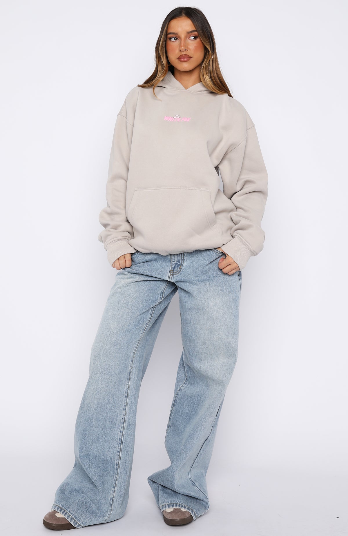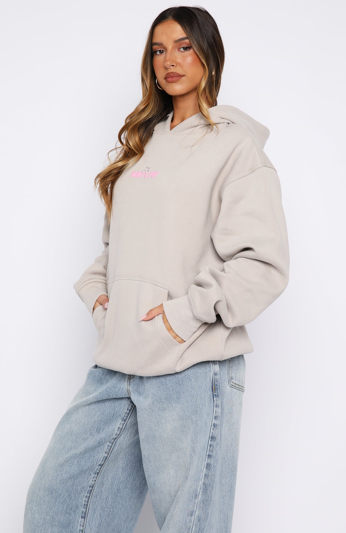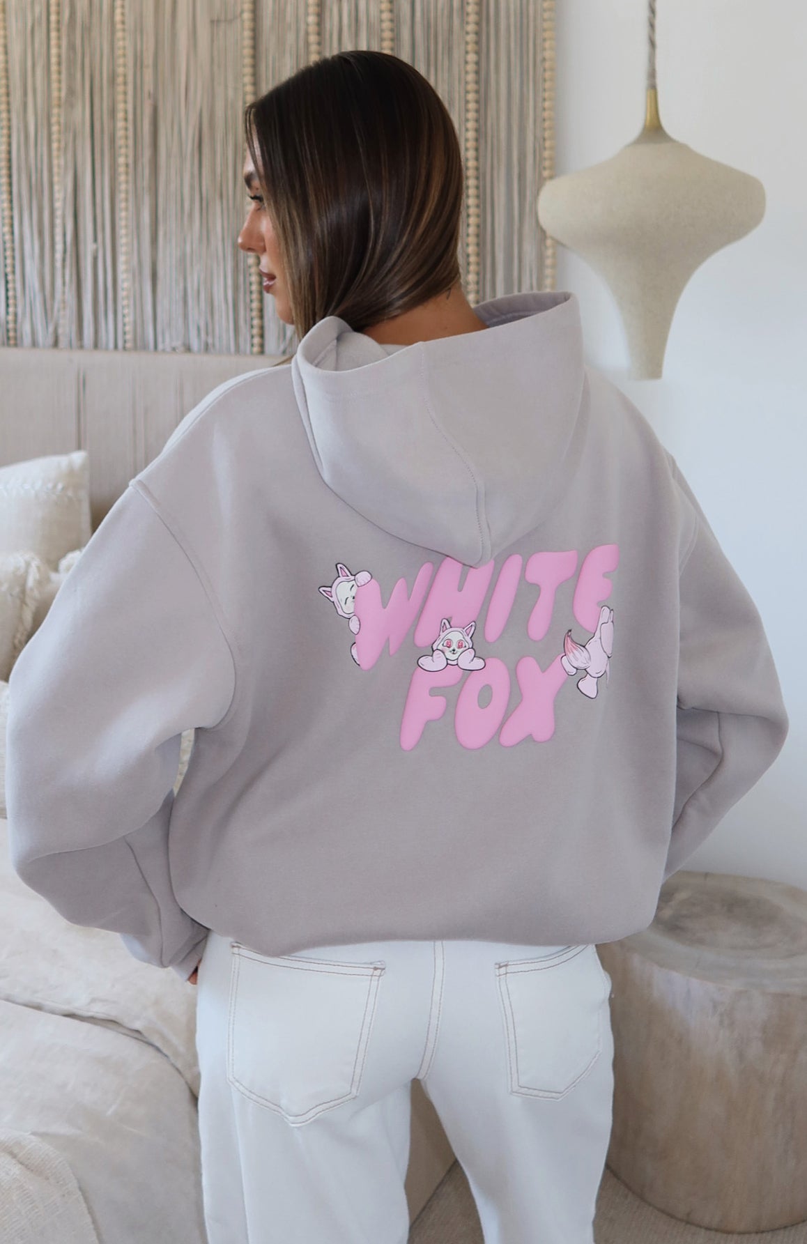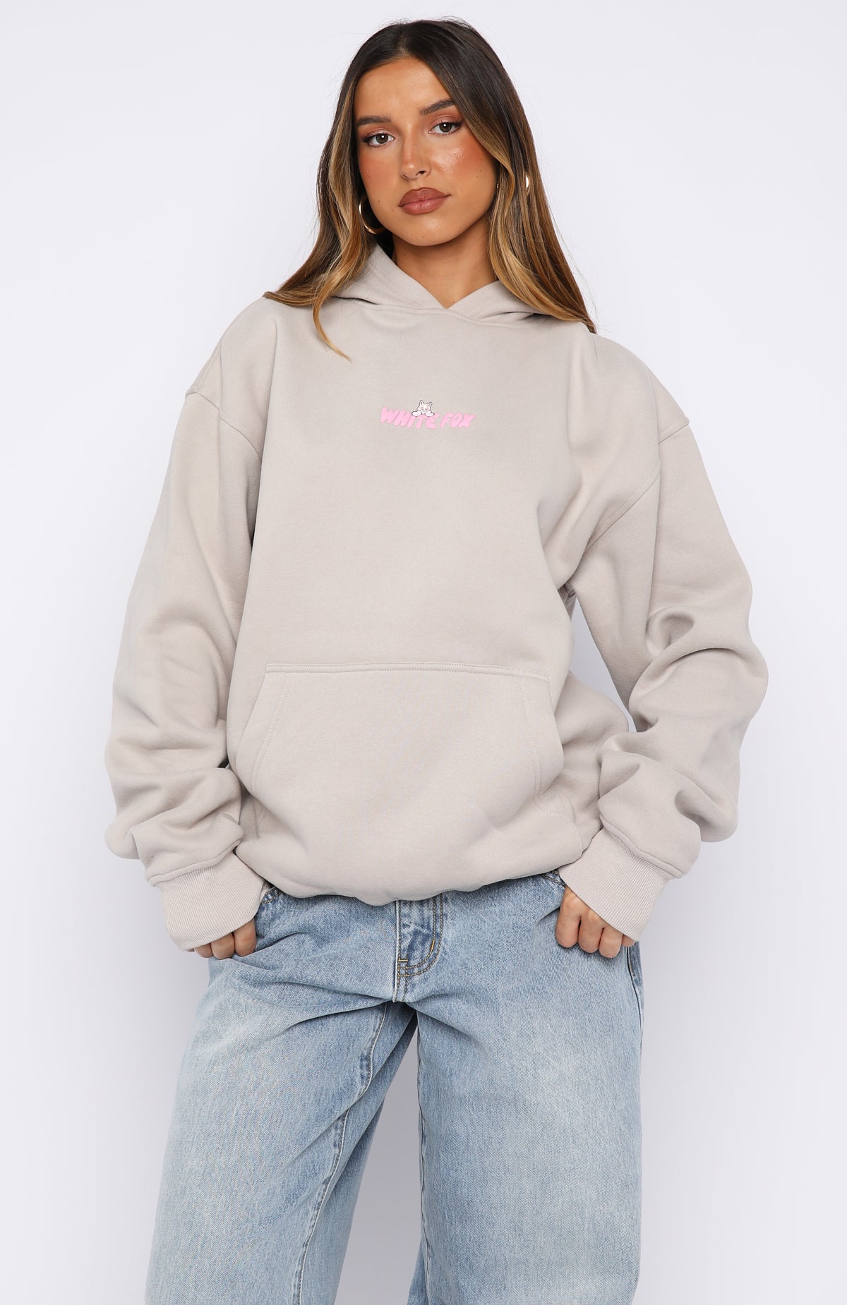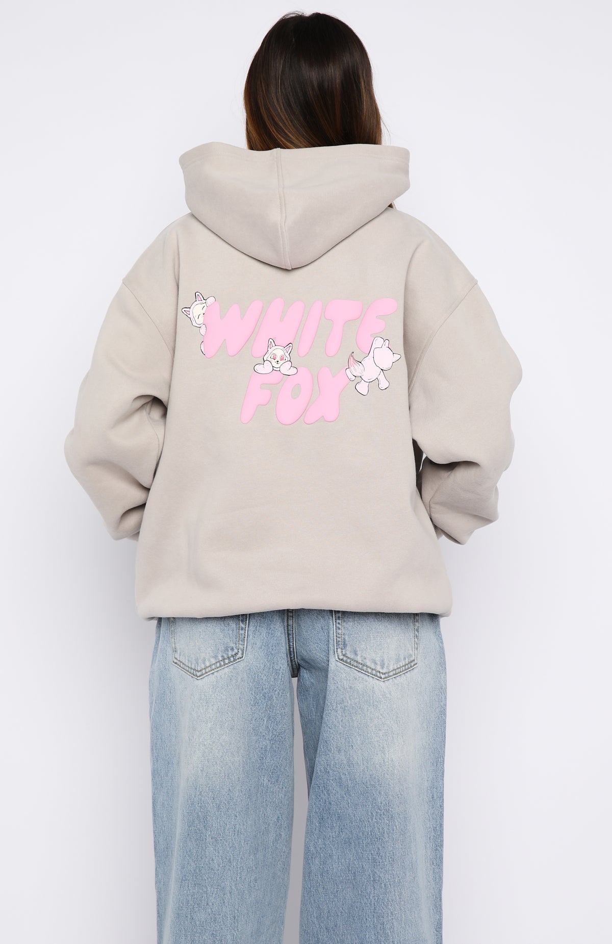 Your ultimate comfort piece has arrived. The Bubbles & Foxy Friends Oversized Hoodie Shortcake is designed with a double lined hood. slouched shoulders and ribbed hems that complete an effortlessly oversized silhouette. Featuring long sleeves. a roomy front pocket. and a soft fleece interior for all day comfort. Finished with a playful puff print logo detailing centre front and back. for a cute statement moment. Style with your favourite denim for the ultimate off duty look.