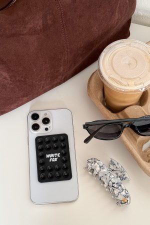 Whether you’re snapping selfies. recording workout sessions. or applying makeup. the Calling My Cellular Phone Grip Black is your bestie! Features front sided suction cups. flat adhesive back and printed White Fox text centre front. We are obsessed!