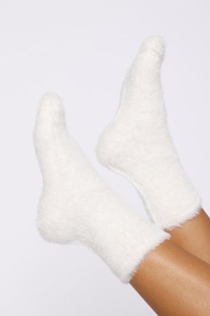 Slip into pure comfort with the Cally Socks in Cream. Crafted in a luxuriously fluffy fabrication and featuring a subtle arch band for gentle support. these unlined socks are your everyday cozy must-have. We’re totally smitten!