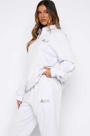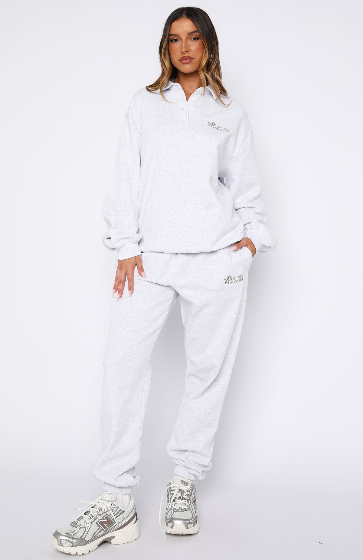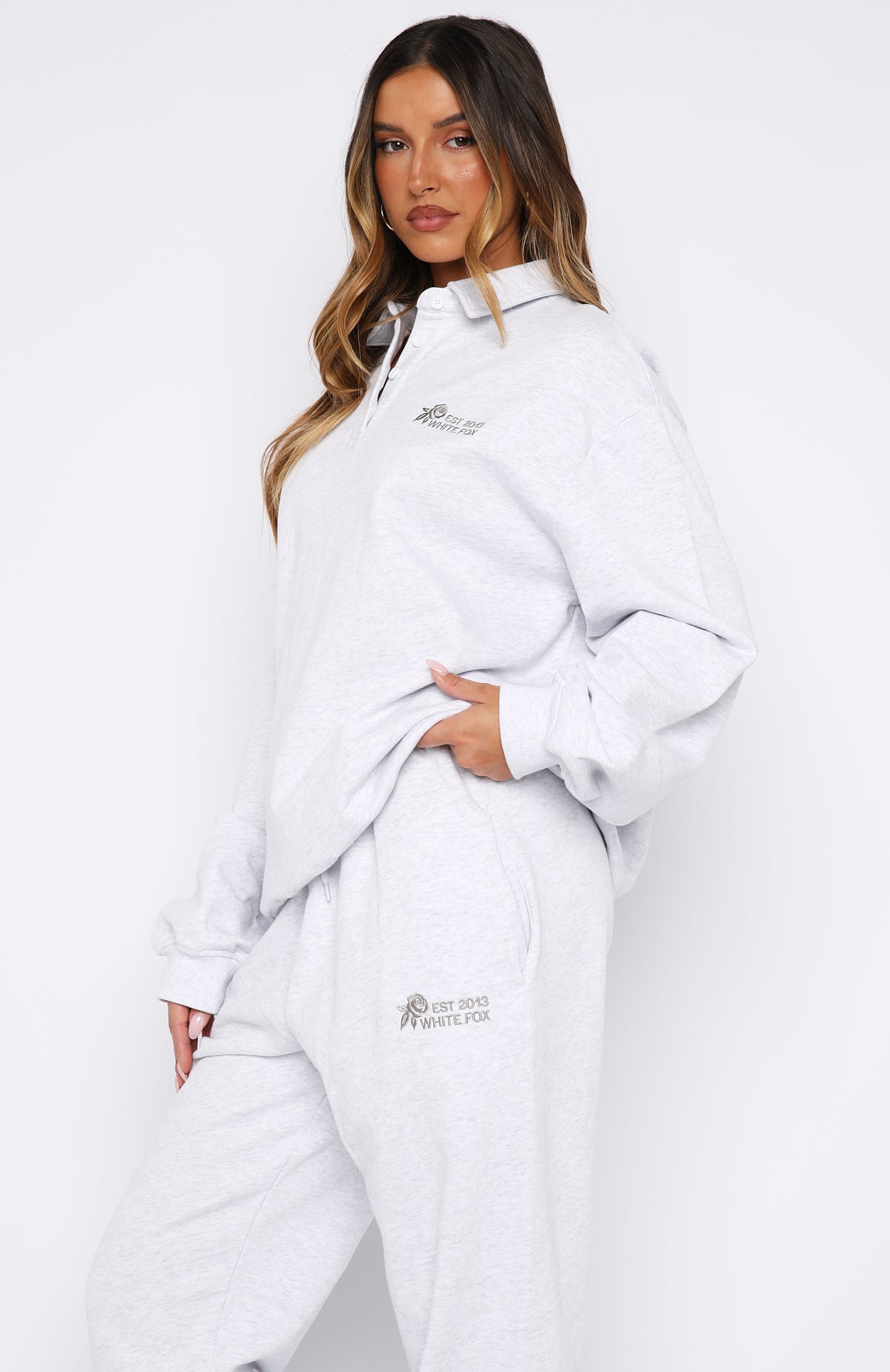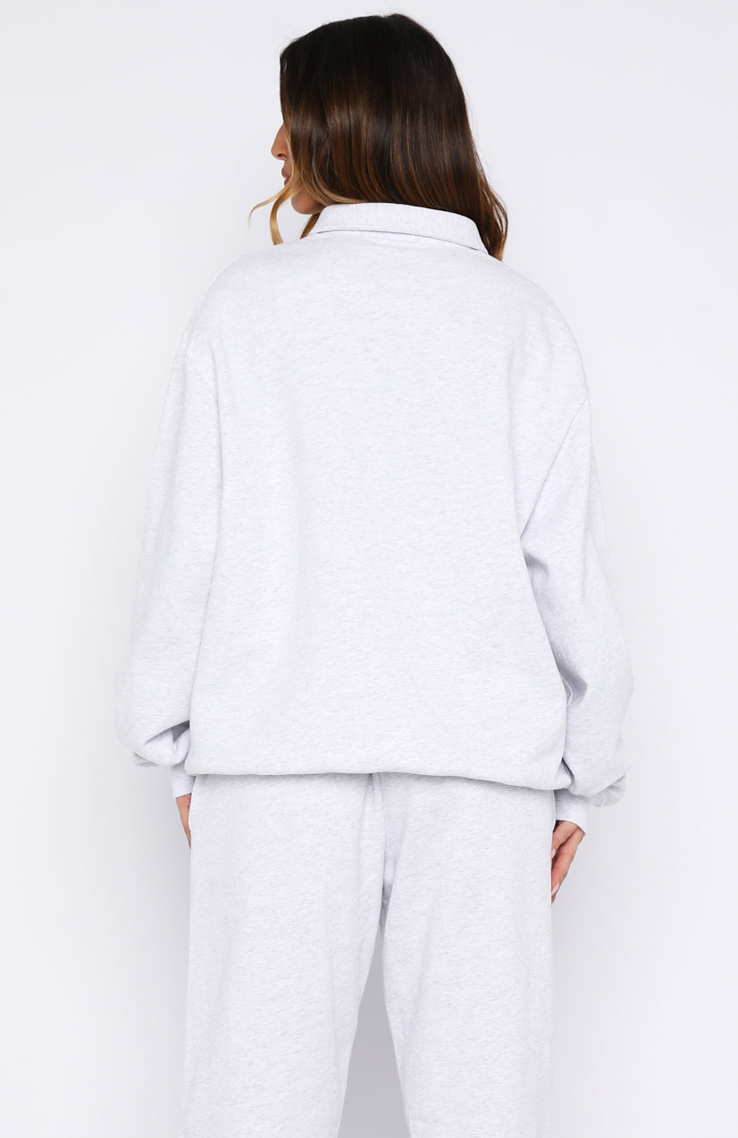 Cosy up next to the fireplace with your drink of choice in the Can’t Be Changed Oversized Henley Sweater Grey Marle. Features a relaxed collar neckline. subtle drop shoulders. button-front placket. long sleeves. ribbed cuffs and ribbed hemband. and an oversized fit for maximum comfort. Finished with embroidered White Fox text. a delicate flower graphic on the side front and loop back interior. Style withouter the matching Can’t Be Changed Sweatpants in Grey Marle and slippers for the ultimate cosy night-in outfit.