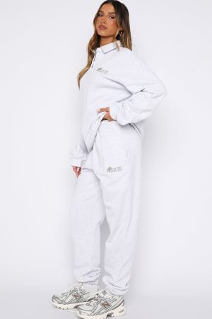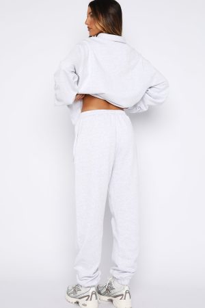 Cosy up next to the fireplace with your drink of choice in the Can’t Be Changed Sweatpants Grey Marle. Featuring a thick. elasticated waistband. inner drawstring closure. side pocket design. elasticated ankles. and loop back for extra comfort. Finished with White Fox embroidered lettering side front paired with delicate rose graphic. Style with the matching Can’t Be Changed Oversized Henley Sweater Grey Marle and slippers for a cosy night-in look.