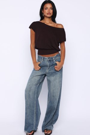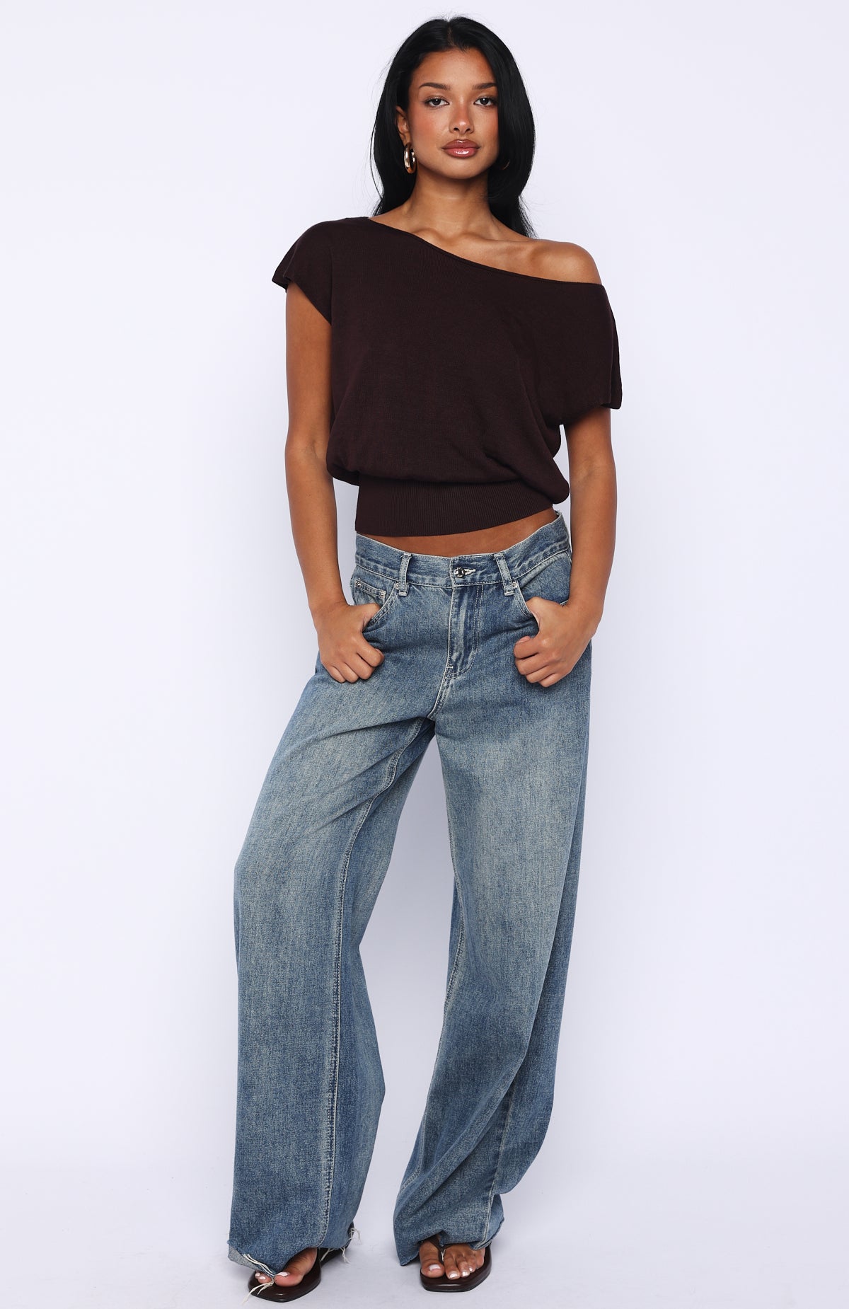 Make styling effortless and chic with the Can’t Change My Mind Top in Chocolate. An easy‑to‑wear essential featuring a flattering off‑the‑shoulder neckline and relaxed bodice. finished with a thick ribbed hem for subtle structure in a soft knit fabrication. Style with your go-to denim jeans and wedges for a chic date night fit.