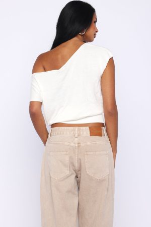 Can’t Change My Mind Off Shoulder Cinched Top Off White