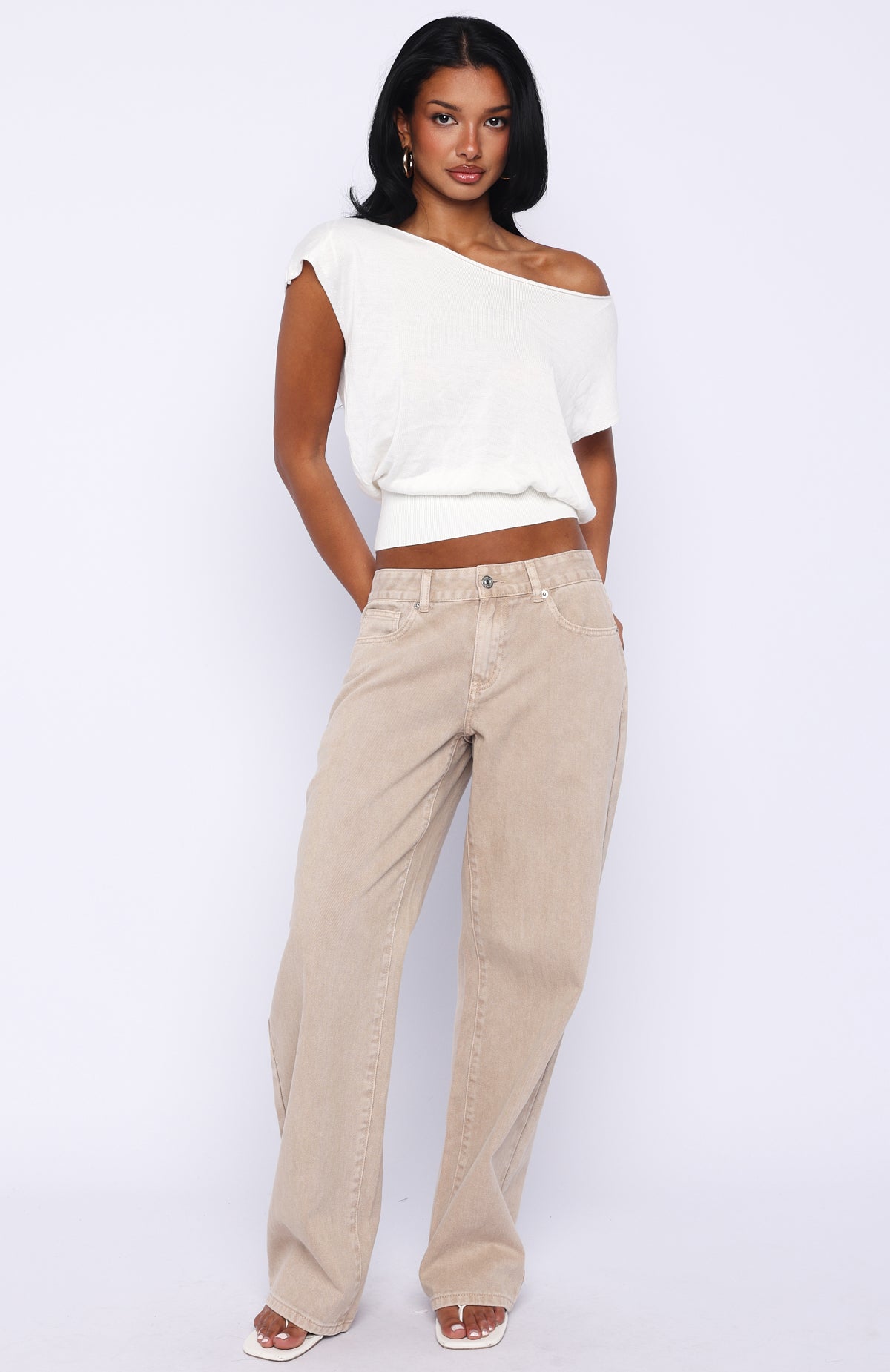 Make styling effortless and chic with the Can’t Change My Mind Top in Off White. An easy‑to‑wear essential featuring a flattering off‑the‑shoulder neckline and relaxed bodice. finished with a thick ribbed hem for subtle structure in a soft knit fabrication. Style with your go-to denim jeans and wedges for a chic date night fit.