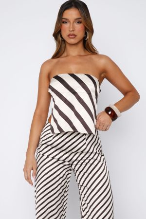 Make summer time dressing simple in the Can’t Let Go Strapless Top Ecru/Choc Stripe. Features a flattering strapless neckline supported by grip tape. and an under-bust seam that delivers subtle structure and support. The bodice drapes loosely for effortless comfort. while adjustable back straps ensure a secure fit. The wow moment is in the backless design adding an airy. breezy finish. Pair with the matching Can’t Let Go Pant for the perfect fit to stroll around town in!