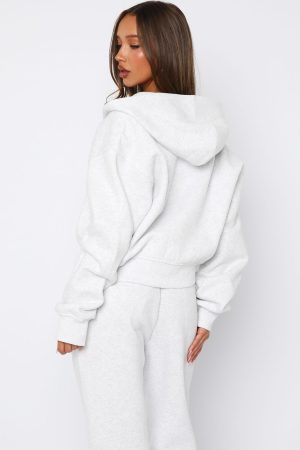 Can't Miss It Boxy Zip Front Hoodie Grey Marle/Rose GoldCan’t Miss It Boxy Zip Front Hoodie Grey Marle/Rose Gold