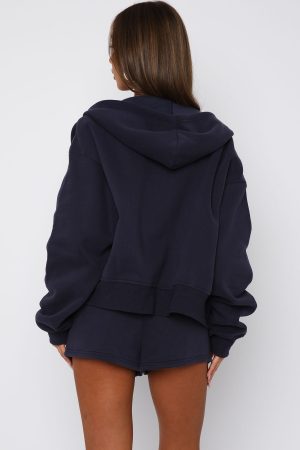 Can't Miss It Boxy Zip Front Hoodie NavyCan’t Miss It Boxy Zip Front Hoodie Navy