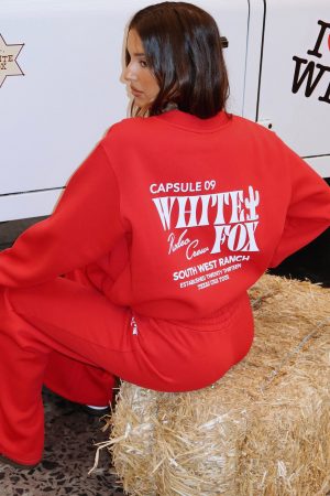 Max out your sweater collection with the Capsule 9 Rodeo Crew Oversized Sweater Red. This oversized sweatshirt has a high scooped neckline. ribbed neckline. cuffs and hem. puff print logo centre front and back. super soft fleece lining for extra comfort and looks best paired with the matching Capsule 9 Rodeo Crew Wide Leg Sweatpants.