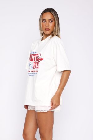 Live your best country girl life in the Capsule 9 Rodeo Crew Oversized Tee White. Features an oversized fit with slouch shoulders. round neckline. and a printed logo centre front. Style with booty shorts and cowboy boots for a look we adore!