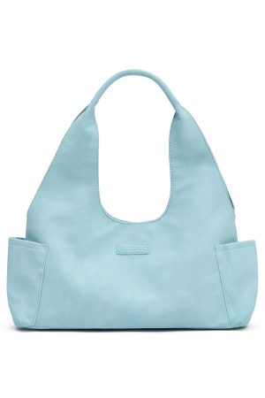 Make a statement with the Cariane Shoulder Bag in Baby Blue Faux Suede! Features a double shoulder strap. two functional side pockets and White Fox label centre front. We are obsessed!