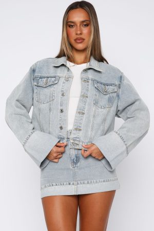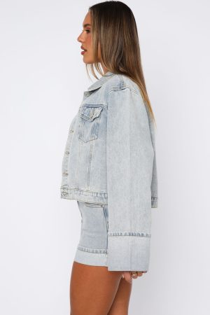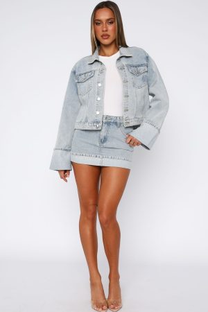 Double up your denim collection with the Charlotte Denim Jacket in Light Blue. Featuring a collared neckline. front button up closure. two front pockets. cropped length. long sleeves with folded cuffs. and unlined. denim material. We can’t get enough of these styled with the matching Charlotte Denim Mini Skirt in Light Blue.