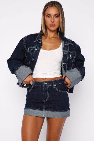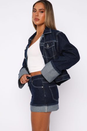 Basics that are elevated…The Charlotte Denim Mini Skirt Dark Indigo features a front button and zip closure. belt loops. 4 pocket design. folded hem design. mini length and back WF logo detailing. Complete your OOTD with a tank top and the Charlotte Denim Jacket Dark Indigo for a look we adore!