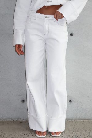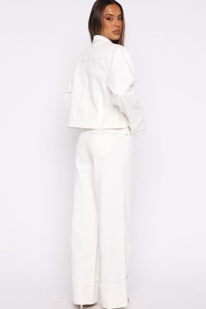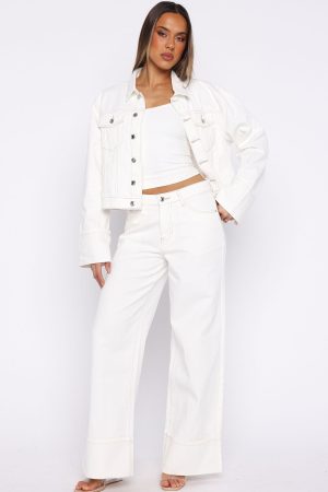 Double up your denim collection with the Charlotte Mid Rise Wide Leg Jeans Dark Off White. Featuring front button and zipper closure. belt loops. 5 pocket design. folded hem design. WF logo detailing. and unlined. denim material. We can’t get enough of these styled with the matching Charlotte Denim Jacket Off White!