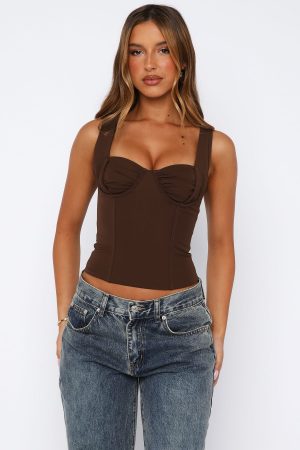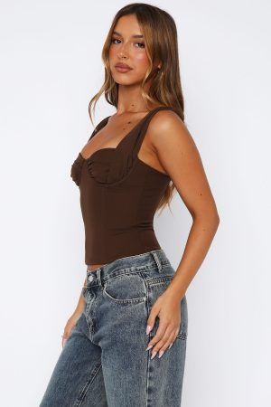 We’ve got you covered with all your weekend outfit dilemmas! The Chasing Shadows Bustier Chocolate is perfect for a cute ‘busti and jeans combo’. Features thick shoulder straps. bust underwire. boning in bodice. ruched bust detailing. cropped length and back zipper and clasp closure.