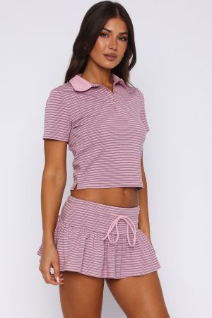 Stay stylish with this must-have piece! The Check The Scores Polo Tee in Pink features collar neckline with button up closure centre front. short sleeve and the softest stretch fabrication for that extra level of comfort. Complete the look with the matching Check The Scores Mini Skirt in Pink for a oh so cute fit.